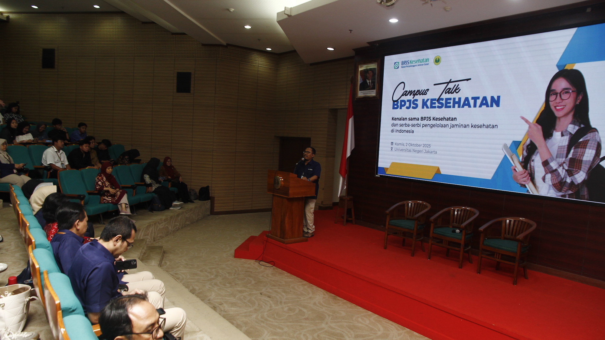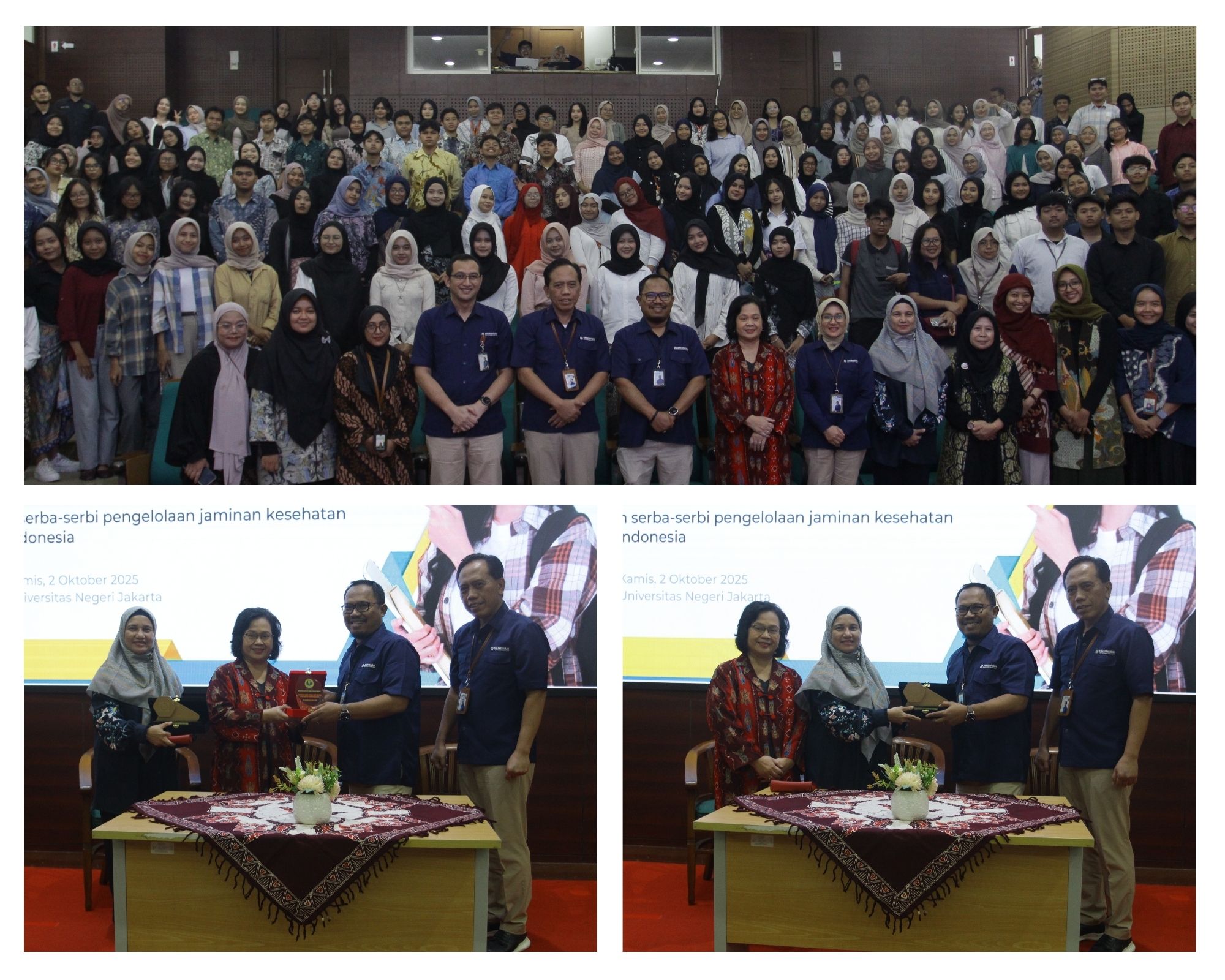 Jakarta, 2 Oktober 2025 — Fakultas Ilmu Sosial dan Hukum (FIS-H) Universitas Negeri Jakarta (UNJ) menjalin kerja sama strategis dengan BPJS Kesehatan melalui kegiatan Campus Talk dan Penandatanganan Nota Kesepahaman yang berlangsung di Aula Maftuchah Yusuf, Kampus A UNJ. Kegiatan ini bertujuan memberikan edukasi kepada mahasiswa mengenai pentingnya kesehatan serta pengelolaan jaminan kesehatan melalui program Jaminan Kesehatan Nasional (JKN).